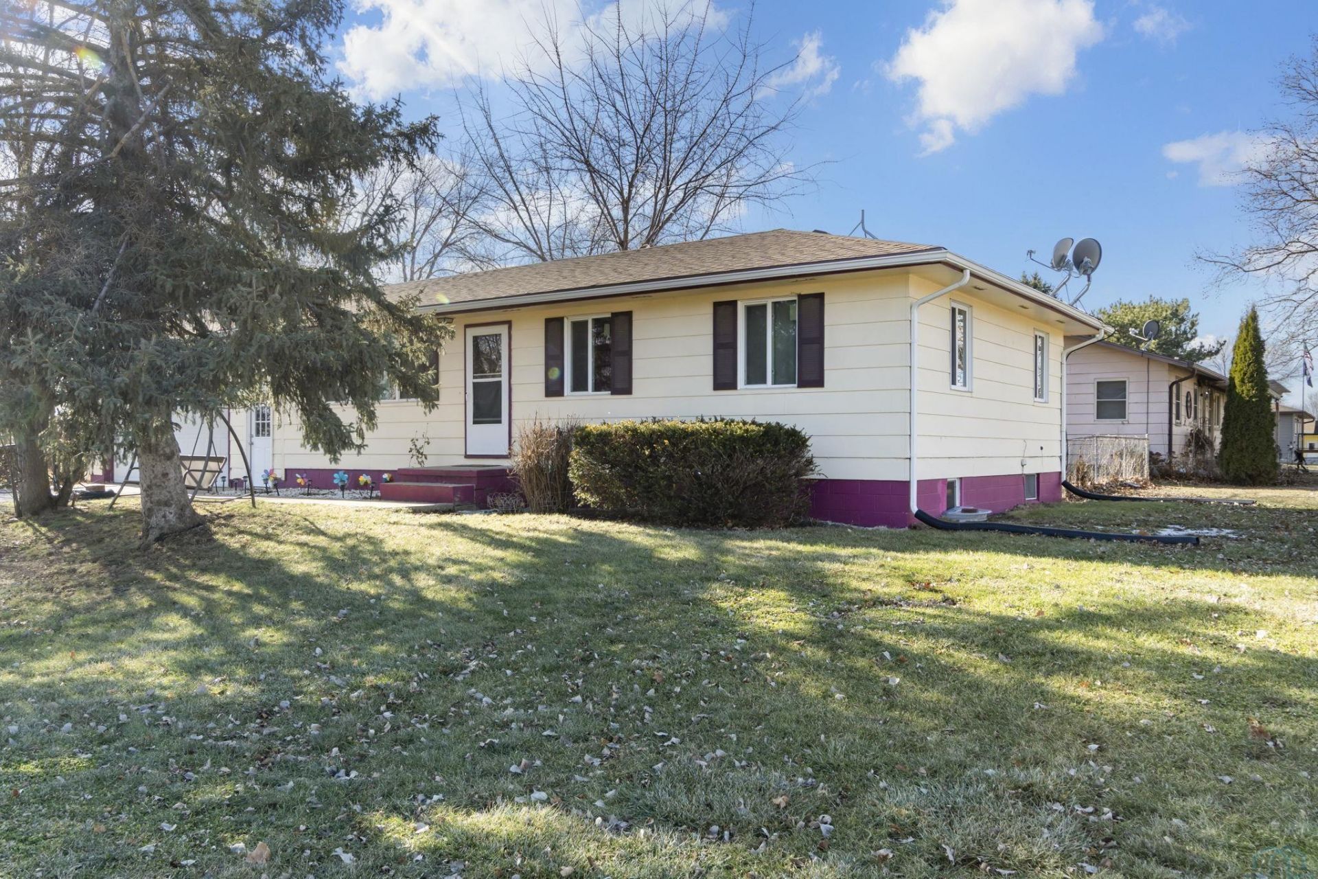 Welcome to this move-in ready ranch home on a quiet corner lot in Dakota City. The home features 4 bedrooms and 2 bathrooms with many recent updates, including new LVP flooring (2024), cabinets and windows (2023), and gutters (2025). The main level offers an open living and dining area with great natural light, a remodeled kitchen with included appliances, three bedrooms, and a full bath. The basement includes a family room, one bedroom with an egress window, one non-conforming bedroom, a full bath, and a large laundry and storage area. This home is well cared for. Room sizes may vary.
